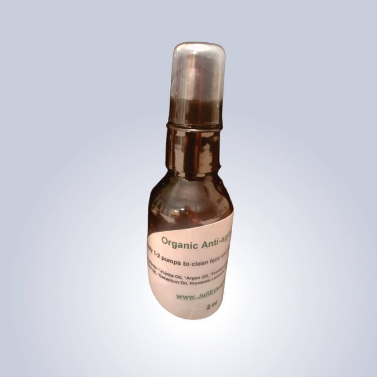This amazing organic anti-aging lotion designed for face and neck can be used night and day. Made with organic jojoba oil, unrefined sesame oil, frankincense Boswellia Cateri oil, ho wood oil, and rose geranium oil. Glass bottle with easy to use pump. Helps to soften fine lines and wrinkles. Your skin will feel amazing and smooth.
