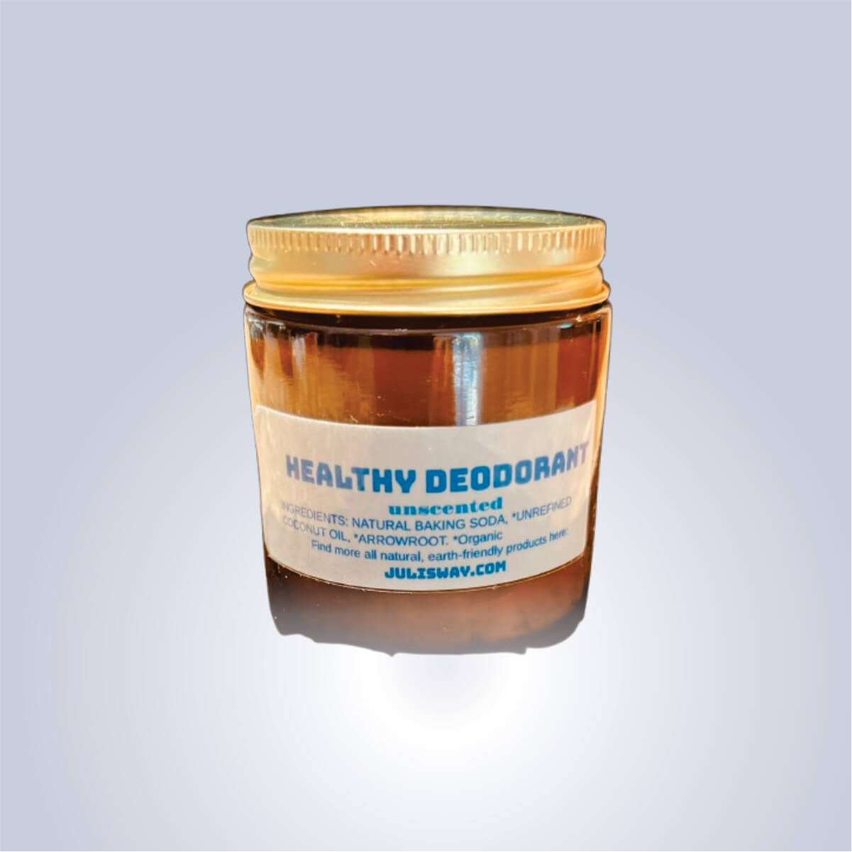 Feel free with this underarm deodorant that works great and is completely natural and scent-free. Only 3 ingredients: Organic coconut oil, baking soda, and organic arrow root.